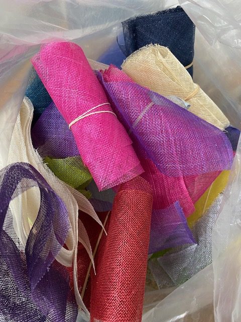 Assorted widths, colours and lengths of Bias cut sinamay strips.