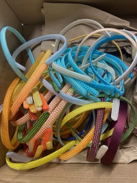 Bundle of assorted colour alicebands, with some glue marks.